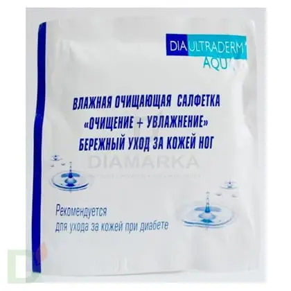 Гипоаллергенный антисептический состав лосьона обеспечивает безопасный эффективный очищающий уход за кожей ног, достаточный для последующего нанесения косметического крема на кожу. Эффективное очищение и увлажнение кожи салфеткой «Диаультрадерм Аква» позволяет использовать крем для ног в качестве завершения комплекса гигиенического ухода, без дополнительных мероприятий. После использования, влажные салфетки «Диаультрадерм Аква» не оставляют липкого ощущения на коже.